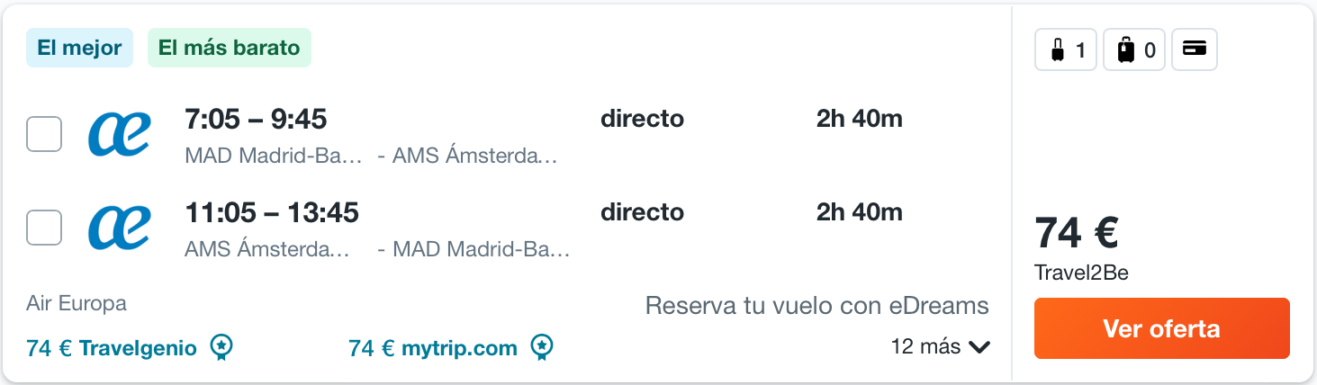BILLETES DE IDA Y VUELTA DESDE MADRID POR SOLO 74 EUROS